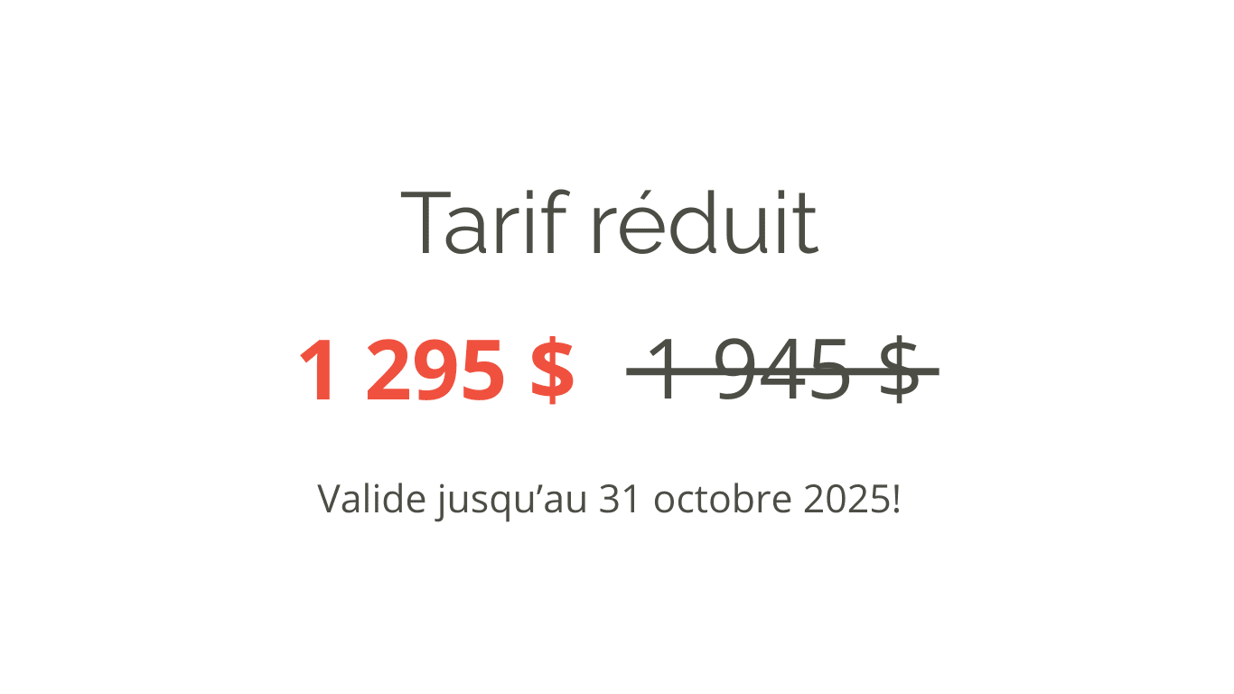 Profitez du tarif spécial à 1295$ et économisez 650$!