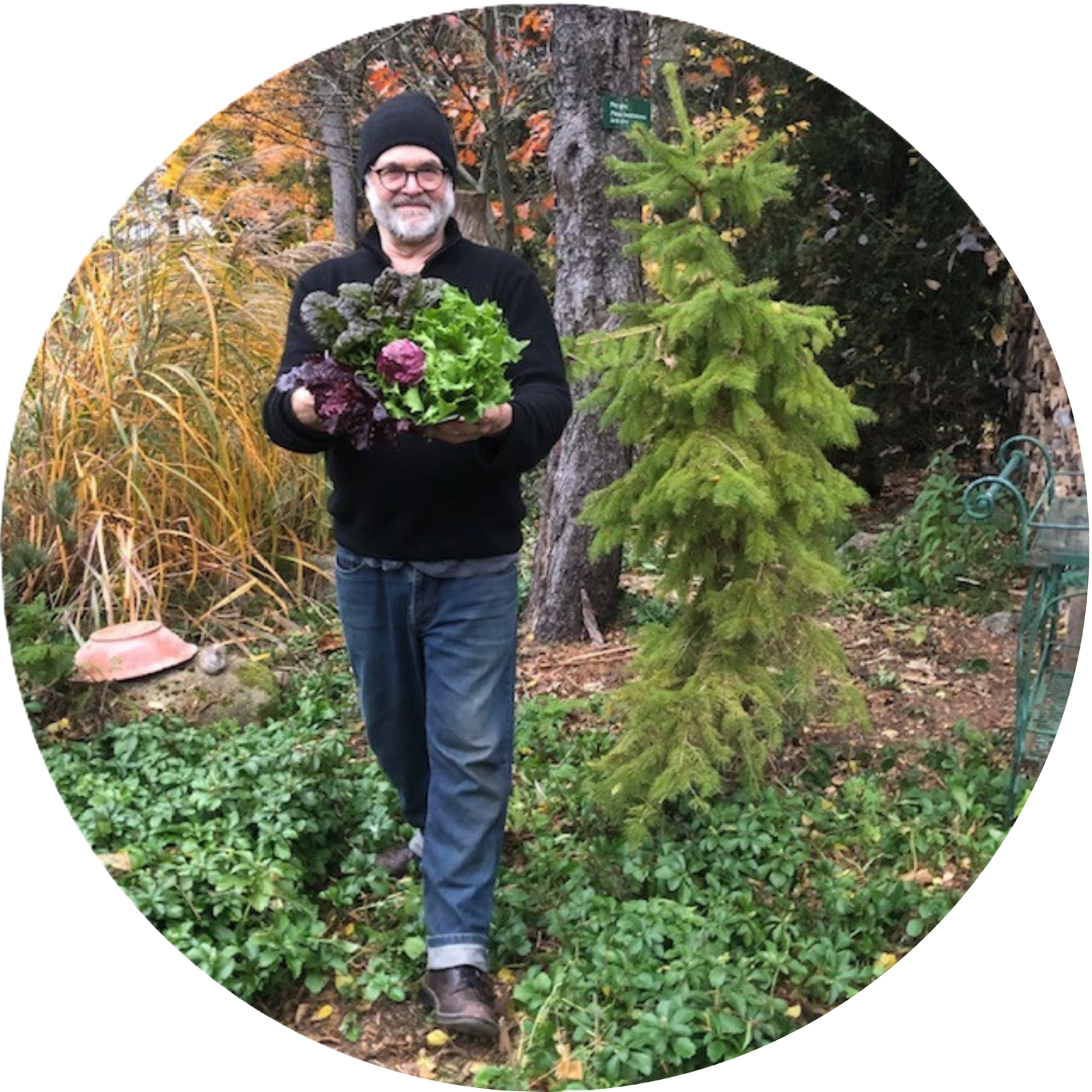 Yves Gagnon s'est installé sur sa terre à Saint-Didace en 1980. Depuis ce temps, il pratique avec ferveur l'autosuffisance alimentaire qui repose sur un jardin diversifié dans lequel il produit fruits, légumes, herbes et semences.